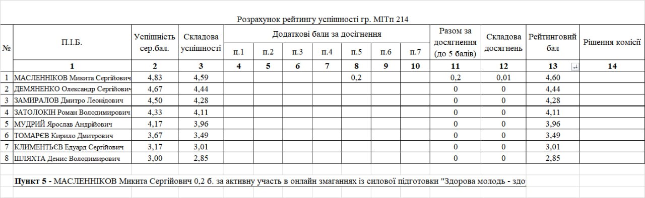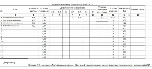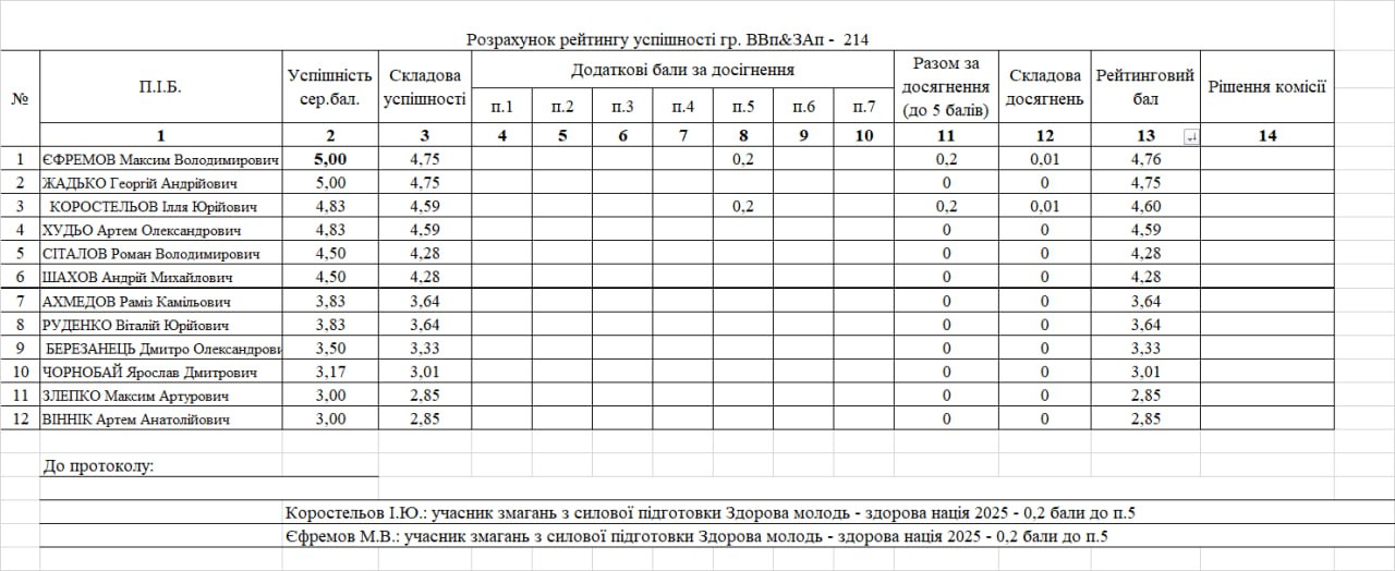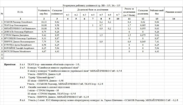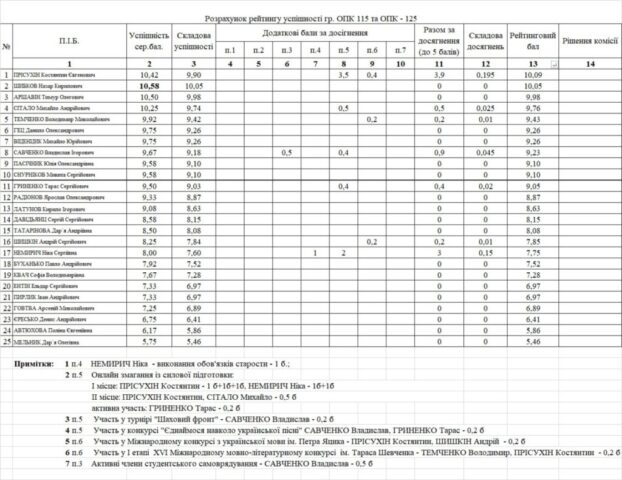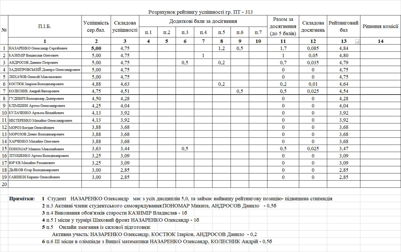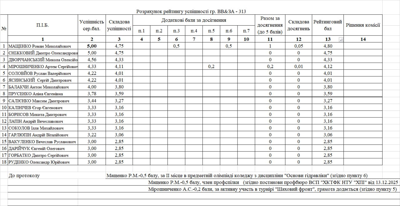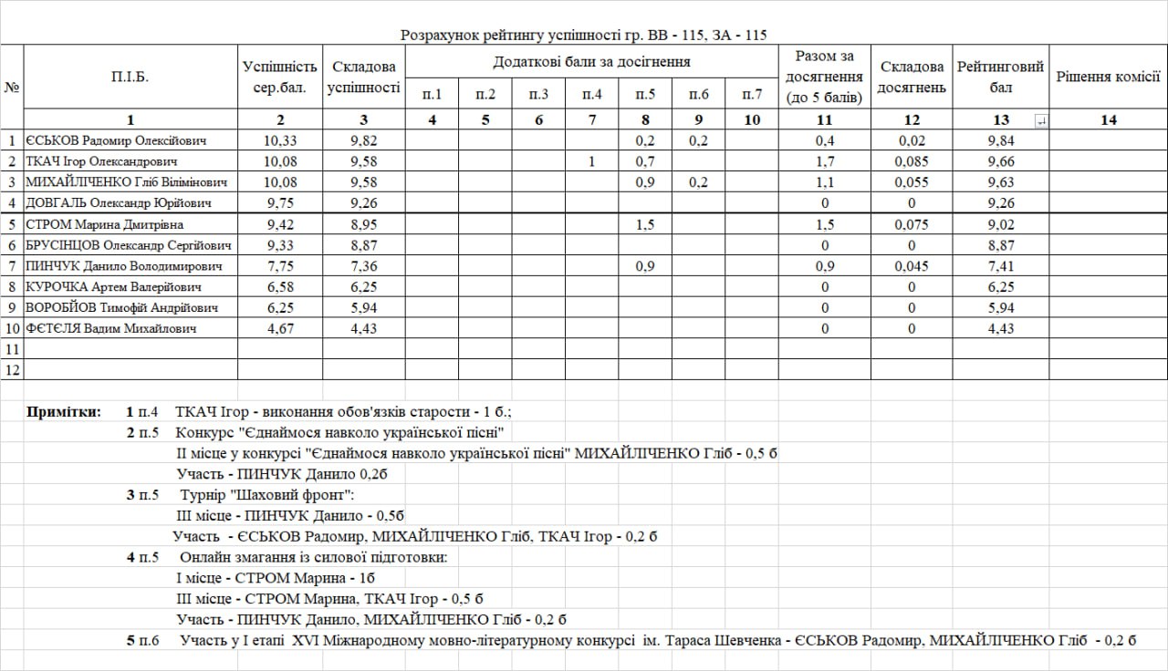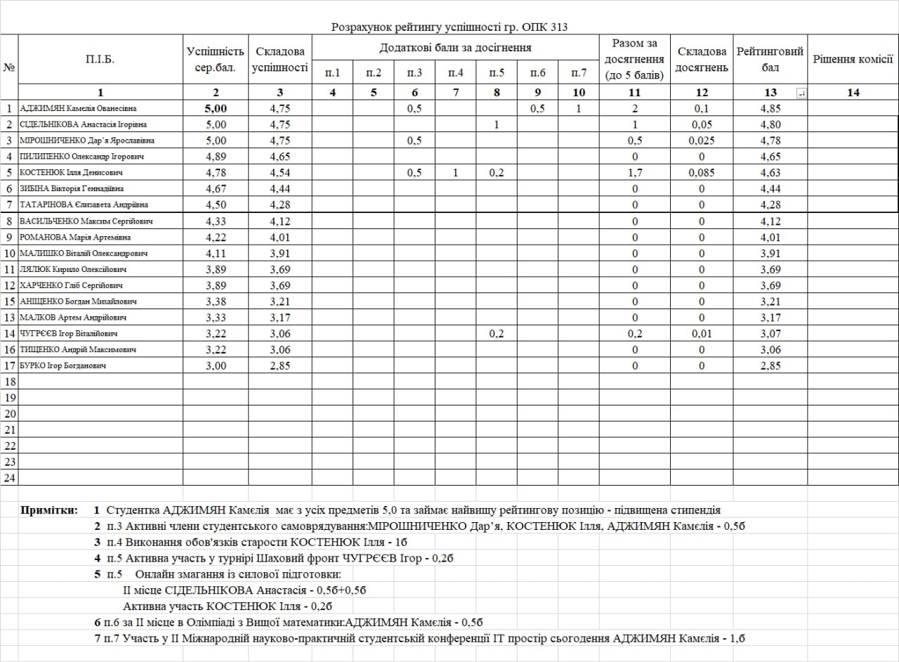 Рейтинг на отримання стипендії 1 півріччя 2025/26н.р.