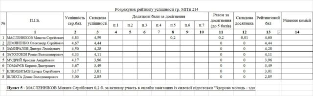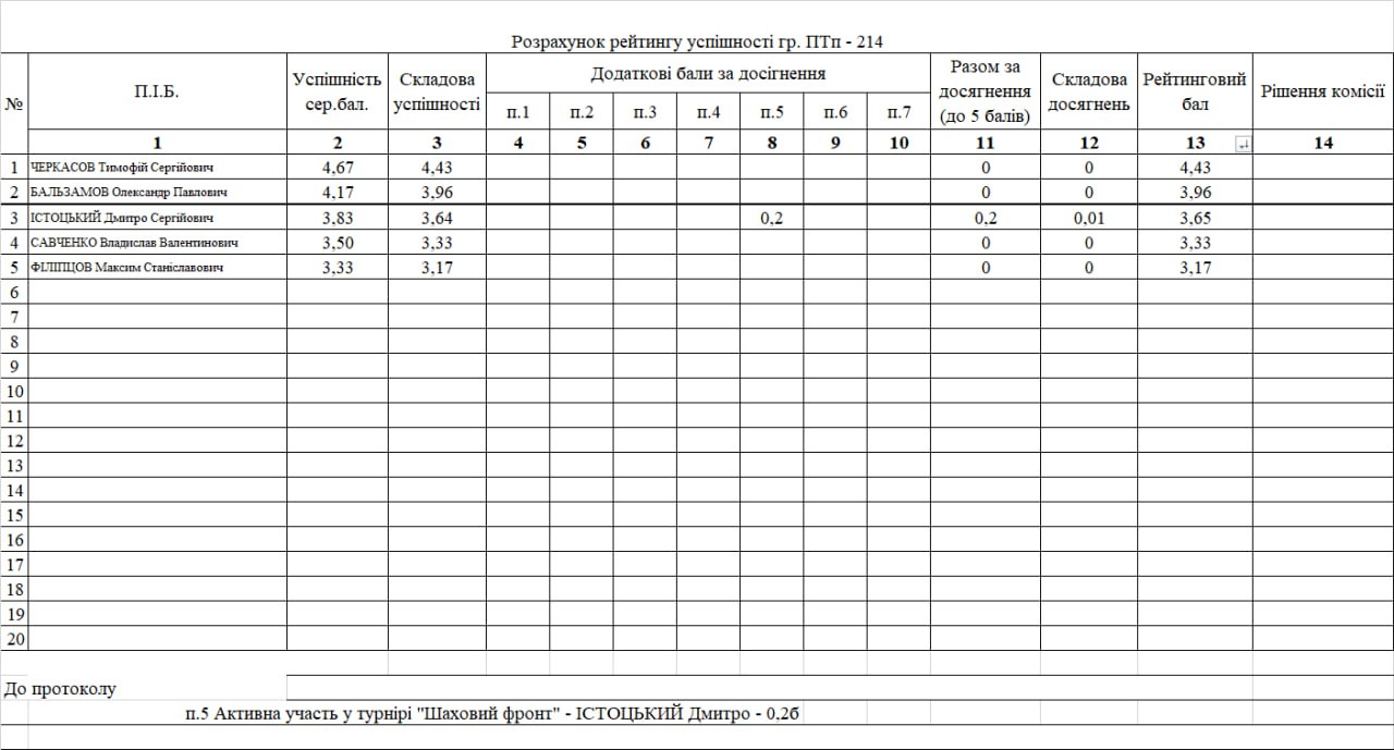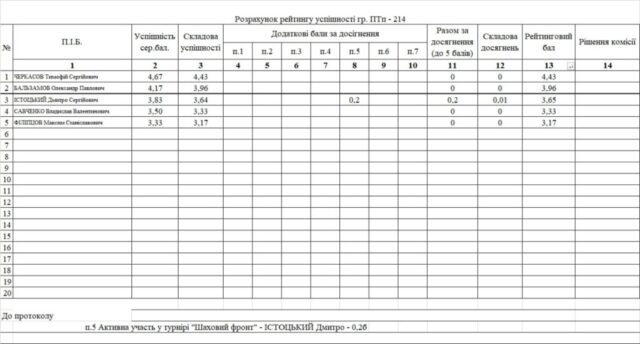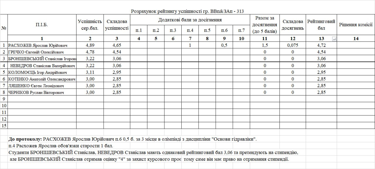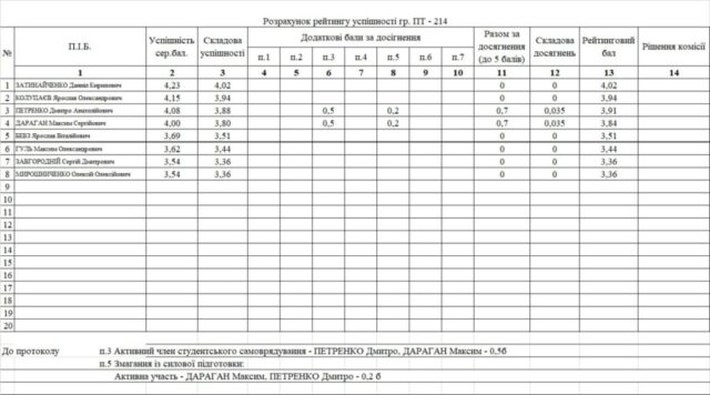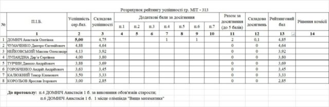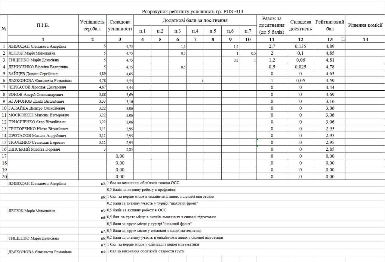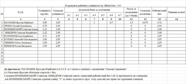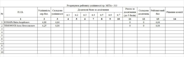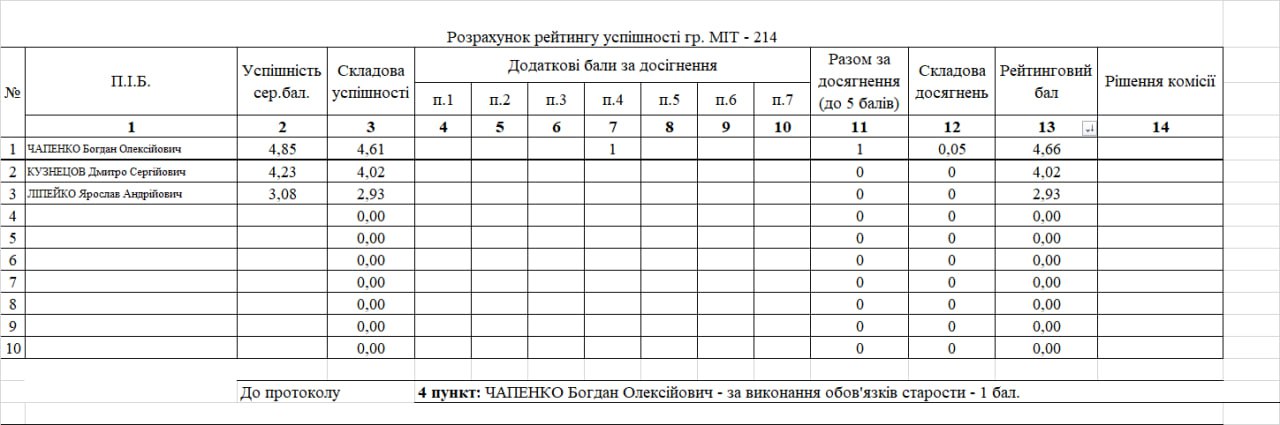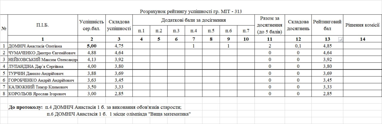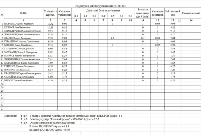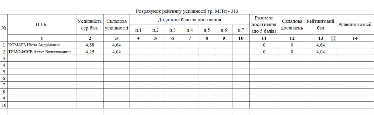 Рейтинг на отримання стипендії 1 півріччя 2025/26н.р.