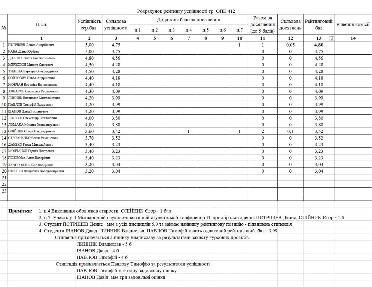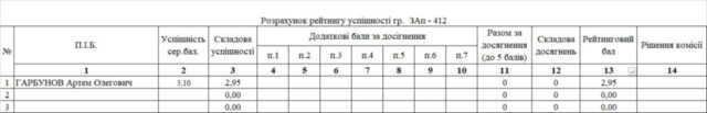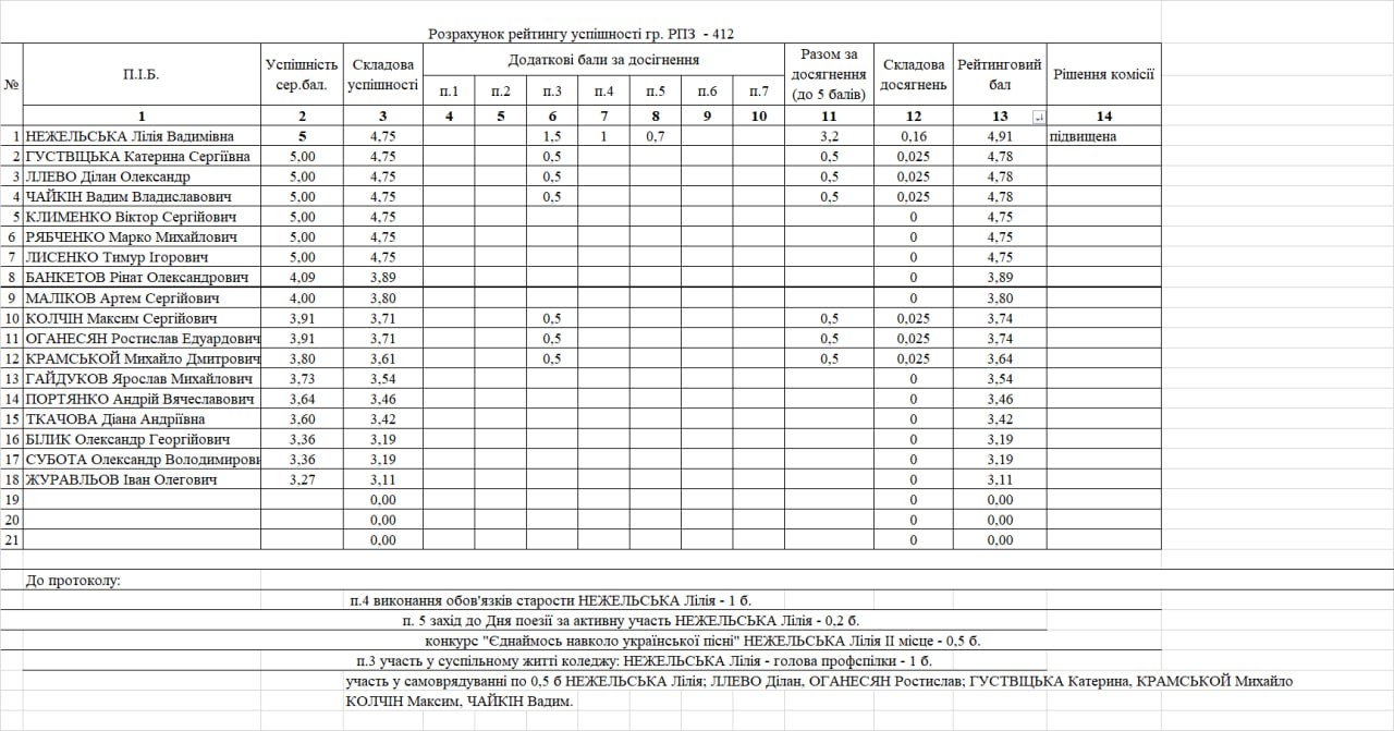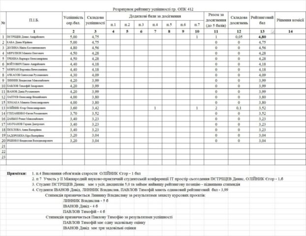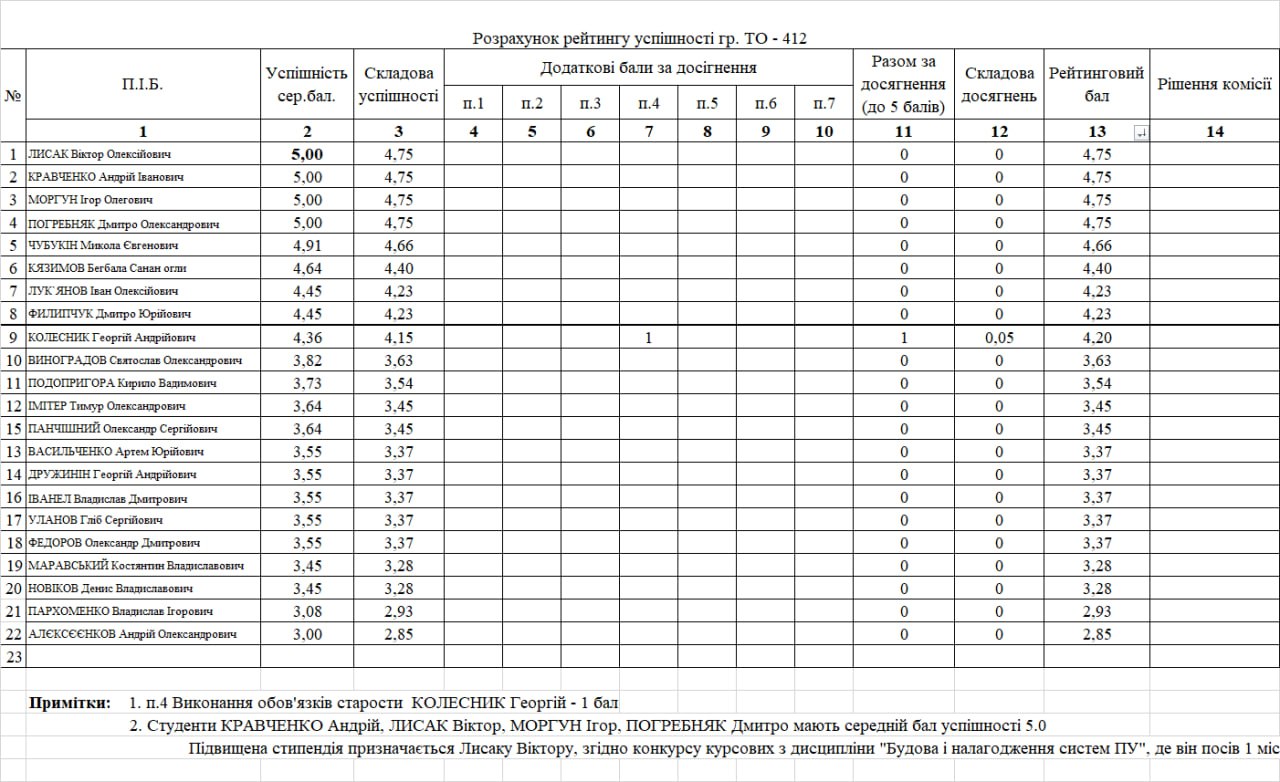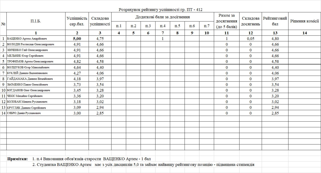 Стипендіальний рейтинг 4 курс 25/26н.р. на ІІ півріччя