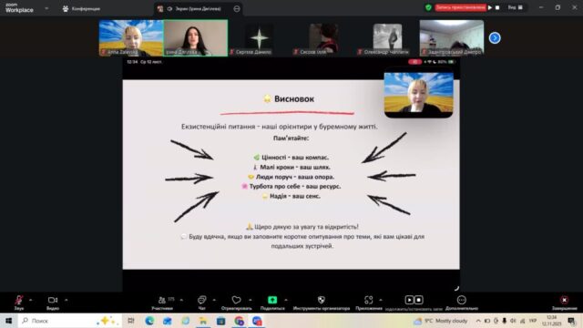 «Внутрішня стійкість: як долати стрес, знаходити підтримку і мотивувати себе в умовах війни». Вона поділилась простими й ефективними способами, як зберігати спокій, знаходити внутрішні ресурси та підтримувати себе в складні часи.