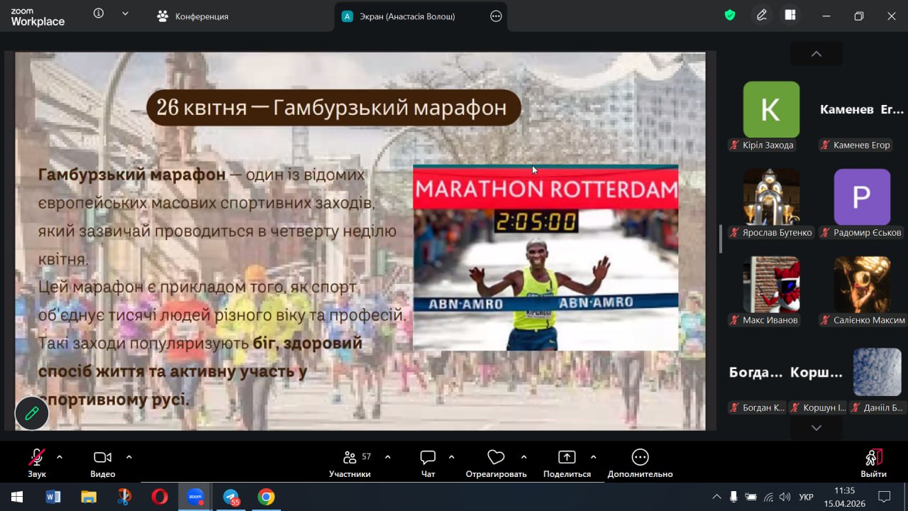 Студенти мали змогу ознайомитися з презентацією, в якій було представлено календар ключових спортивних та оздоровчих дат весняного періоду. Організатори надихнули молодь на активність, закликали обрати власний формат руху та зарядили коледж позитивною енергією.