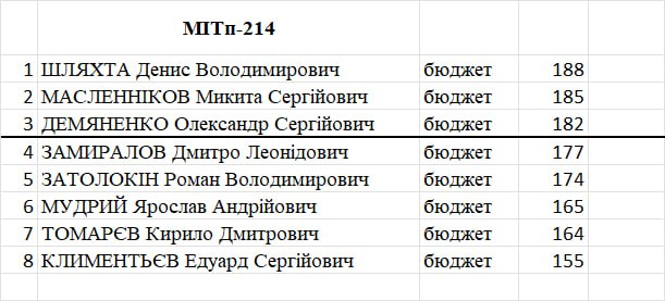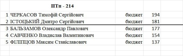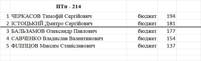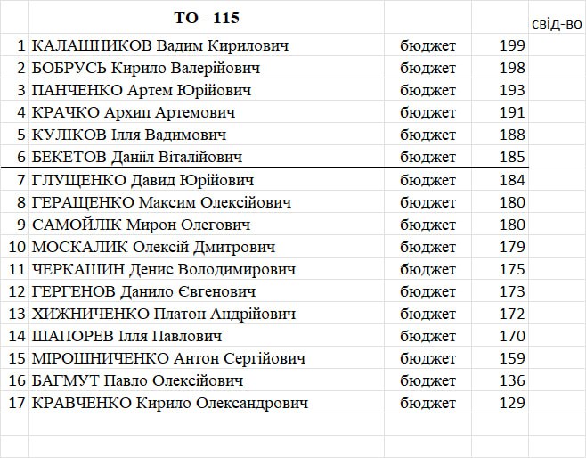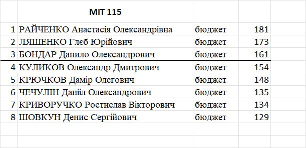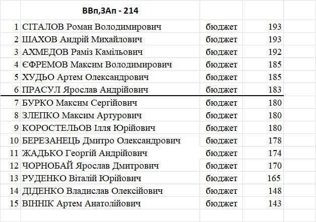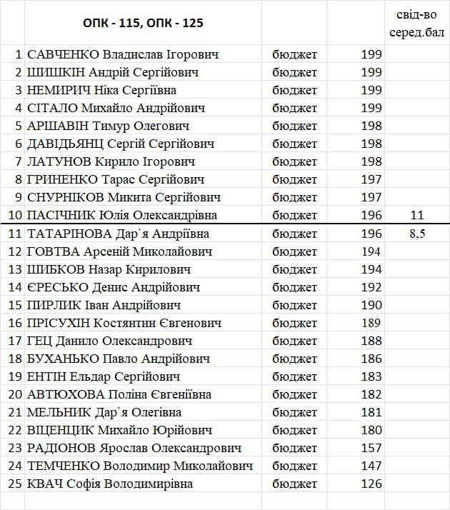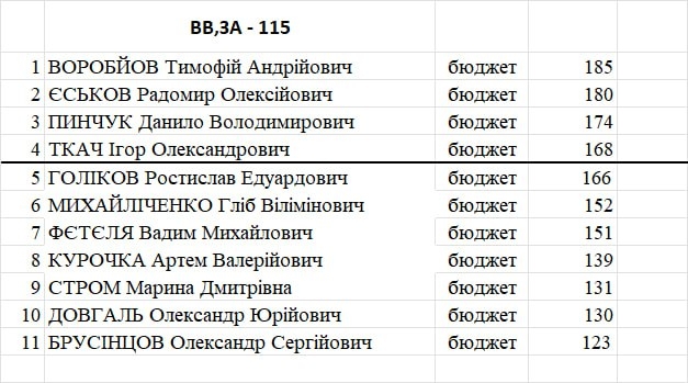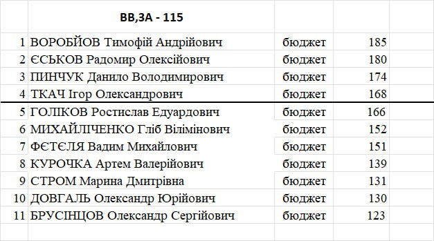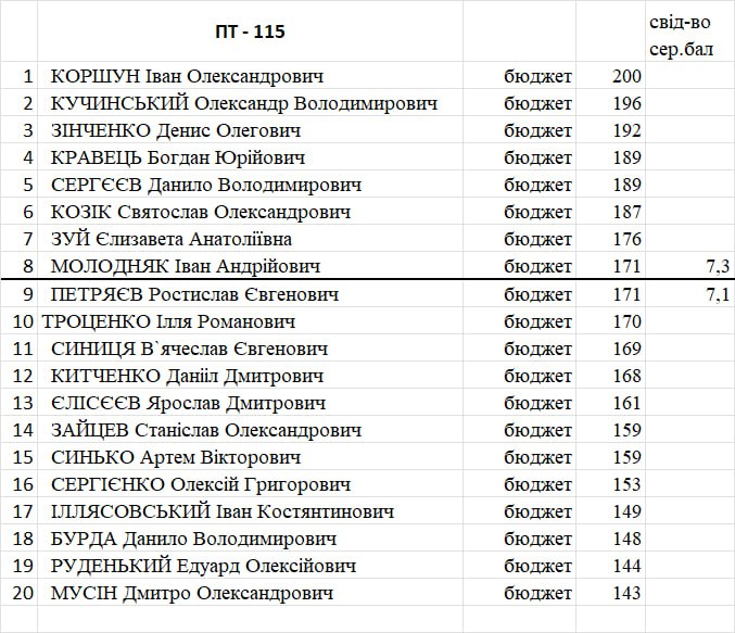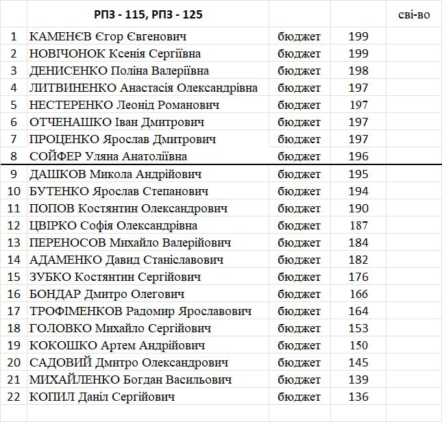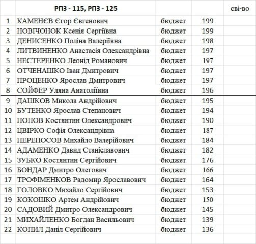 Рейтинг на отримання стипендії І курс, 25/26н.р.